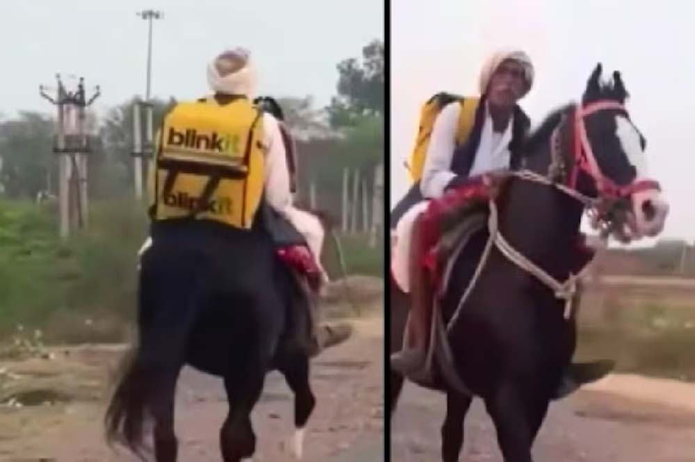 राजस्थान की रंगीन संस्कृति और शाही अंदाज की झलक दिखाता एक अनोखा वीडियो इन दिनों सोशल मीडिया पर तेजी से वायरल हो रहा है. वीडियो में एक बुजुर्ग व्यक्ति घोड़े पर सवार नजर आता है और उसकी पीठ पर ब्लिंकिट का चमकीला पीला डिलीवरी बैग टंगा हुआ है. पारंपरिक सवारी और आधुनिक डिलीवरी सिस्टम का यह मेल लोगों का ध्यान खींच रहा है.