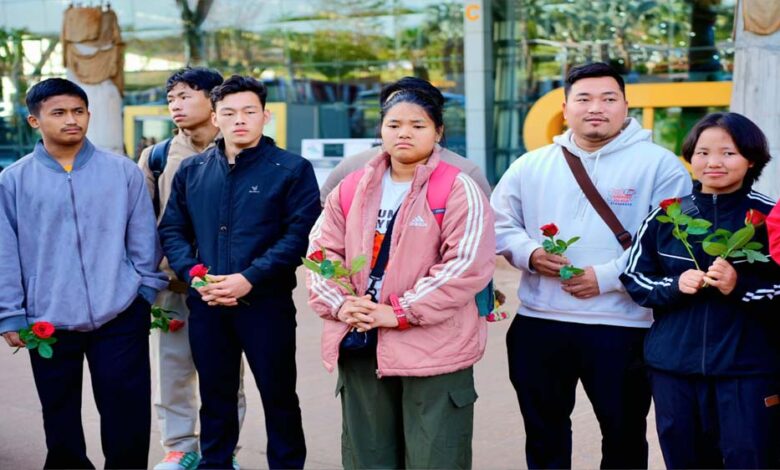 अरुणाचल के वेटलिफ्टरों का विमानतल पर रंगारंग स्वागत