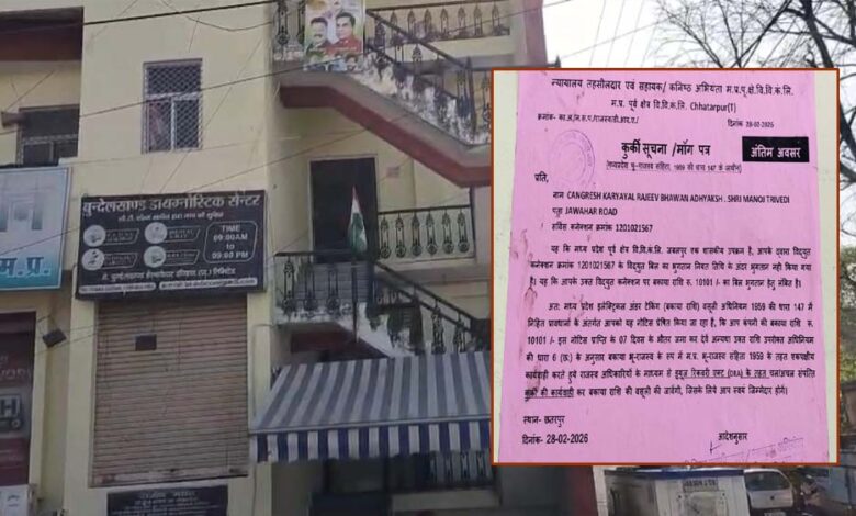 कांग्रेस कार्यालय छतरपुर में उस वक्त हड़कम्प मच गया जब कार्यालय को कुर्क करने का नोटिस जारी कर दिया गया. यह नोटिस MPEB द्वारा कांग्रेस कार्यालय के बाहर चस्पा किया गया था. दरअसल, कांग्रेस कार्यालय छतरपुर ने लंबे समय से बिजली का बिल नहीं भरा था और बार-बार सूचना के बाद भी बिल नहीं दिया, जिसके बाद MPEB ने अब कुर्की की कार्रवाई शुरू कर दी है.