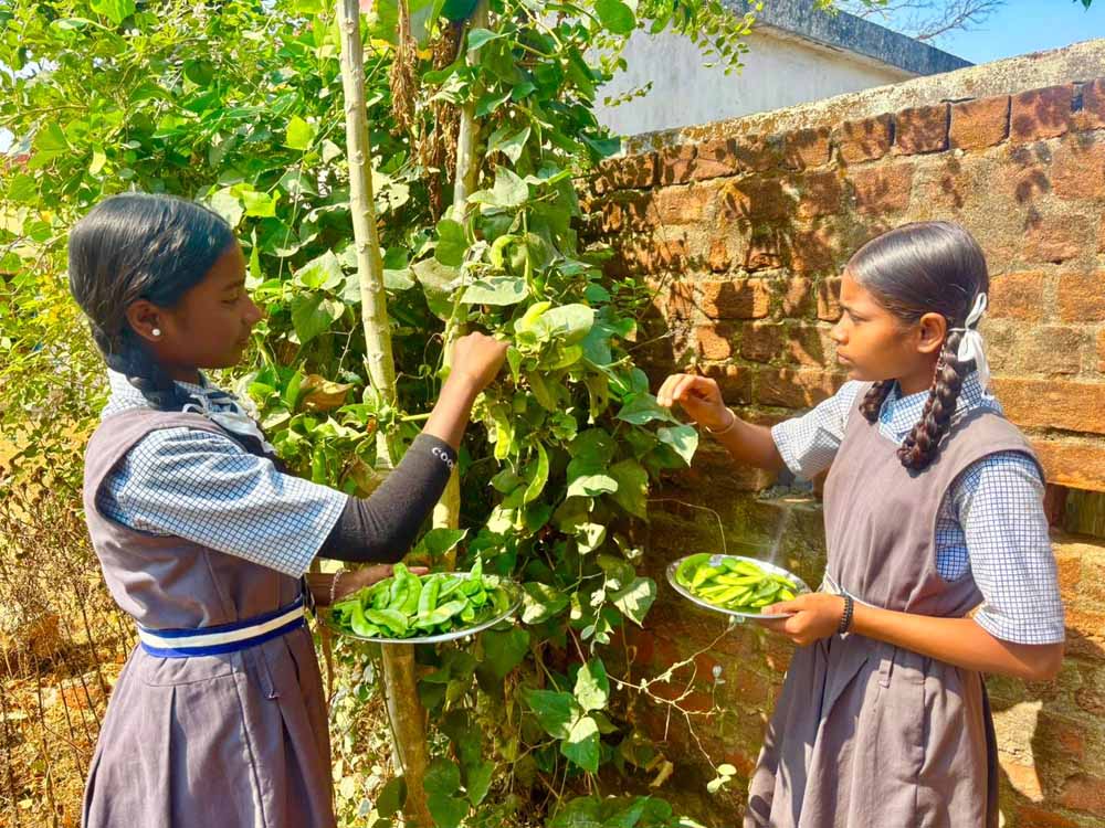 बच्चों को मिल रहा पौष्टिक आहार विद्यालय की बगिया से