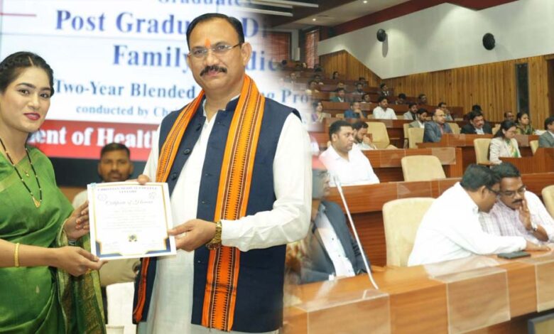 स्वास्थ्य मंत्री श्याम बिहारी जायसवाल ने इस अवसर पर अपने संबोधन में कहा कि यह पाठ्यक्रम चिकित्सा पेशेवरों की उत्कृष्ट शिक्षा, समर्पण एवं सेवा भावना को मान्यता प्रदान करता है। फैमिली मेडिसिन की यह विशेष प्रशिक्षण व्यवस्था न केवल चिकित्सकों के कौशल को सुदृढ़ करती है, बल्कि समाज के प्रत्येक वर्ग तक गुणवत्तापूर्ण और सुलभ स्वास्थ्य सेवाएं पहुंचाने की दिशा में महत्वपूर्ण भूमिका निभाती है।