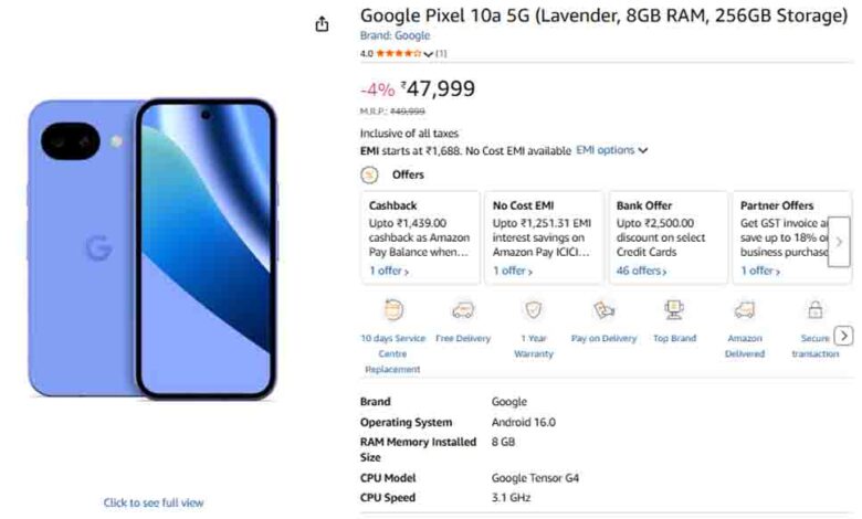 Google Pixel 10a पर मिल रही है भारी छूट और अब बेहद कम कीमत में घर ले आएं गूगल का यह प्रीमियम 5G स्मार्टफोन