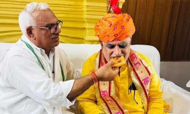 डीग में दिखा राजनीति का मीठा चेहरा और जवाहर सिंह बेढम ने झाबर सिंह खर्रा को खिलाया ब्रज का मशहूर जलेबा