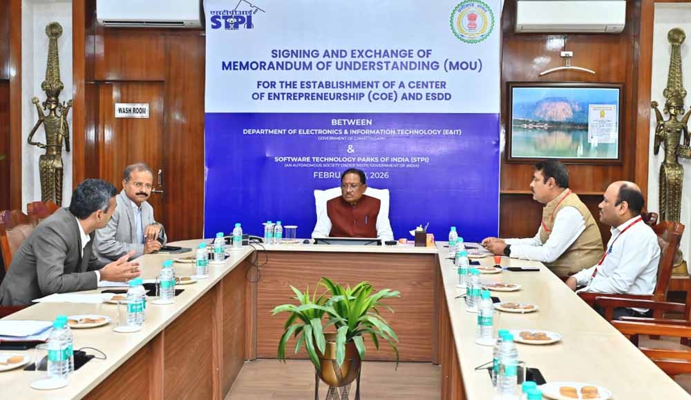छत्तीसगढ़ प्राकृतिक संसाधनों से समृद्ध राज्य है। हमारा लक्ष्य है कि छत्तीसगढ़ ज्ञान, तकनीक और नवाचार के क्षेत्र में भी देश में अपनी विशिष्ट पहचान बनाए। छत्तीसगढ़ सरकार राज्य को ज्ञान, तकनीक और नवाचार के क्षेत्र में अग्रणी बनाने की दिशा में निरंतर आगे बढ़ रही है।आधुनिक अधोसंरचना, प्रभावी ई-गवर्नेंस प्रणाली और निवेश-अनुकूल नीतियों के चलते छत्तीसगढ़ आज आईटी, आईटीईएस एवं इमरजिंग टेक्नोलॉजी आधारित उद्योगों के लिए एक भरोसेमंद और आकर्षक गंतव्य के रूप में उभर रहा है। मुख्यमंत्री विष्णु देव साय ने आज अपने निवास कार्यालय में इलेक्ट्रॉनिक्स एवं सूचना प्रौद्योगिकी विभाग, छत्तीसगढ़ शासन एवं सॉफ्टवेयर टेक्नोलॉजी पार्क्स ऑफ इंडिया (एसटीपीआई) के मध्य हुए महत्वपूर्ण समझौता ज्ञापन (एमओयू) उपरांत कार्यक्रम को संबोधित करते हुए यह बात कही।
